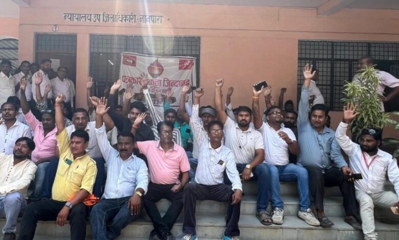 बहराइच ( नानपारा सिटी )l कोतवाल नानपारा के खिलाफ पत्रकारों ने जुलूस निकालकर एसडीएम को दिया ज्ञापन और बर्खास्त करने की मांग उठाई। मंगलवार को नानपारा, मिहिपुरवा तहसील क्षेत्र के पत्रकार नगर के गुड गुड डेरी पर इकट्ठा हुए और जुलूस निकालकर पत्रकार एकता जिंदाबाद, आवाज दो हम एक हैं, पुलिस प्रशासन मुर्दाबाद के नारे लगाते हुए शिव मंदिर से तहसील मुख्यालय तक पहुंचे और जमकर नारेबाजी कर धरने पर बैठे ।